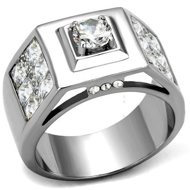 Alamode TK2220-12 Men High Polished Stainless Steel Ring with AAA Grade CZ in Clear - Size 12