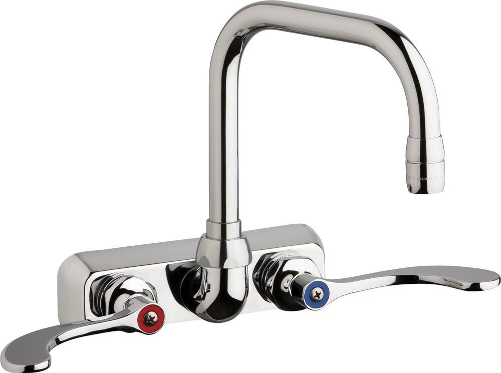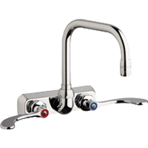 Chicago Faucet W4W-DB6AE35-317AB Wall Mount Workboard Faucet with 6-1/4" Double Bend Spout, 4"