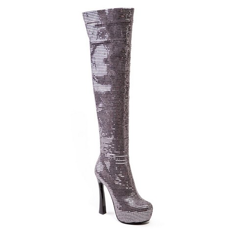 Lady Couture Over Knee Length Striketch Boot- Pewter - Size 40