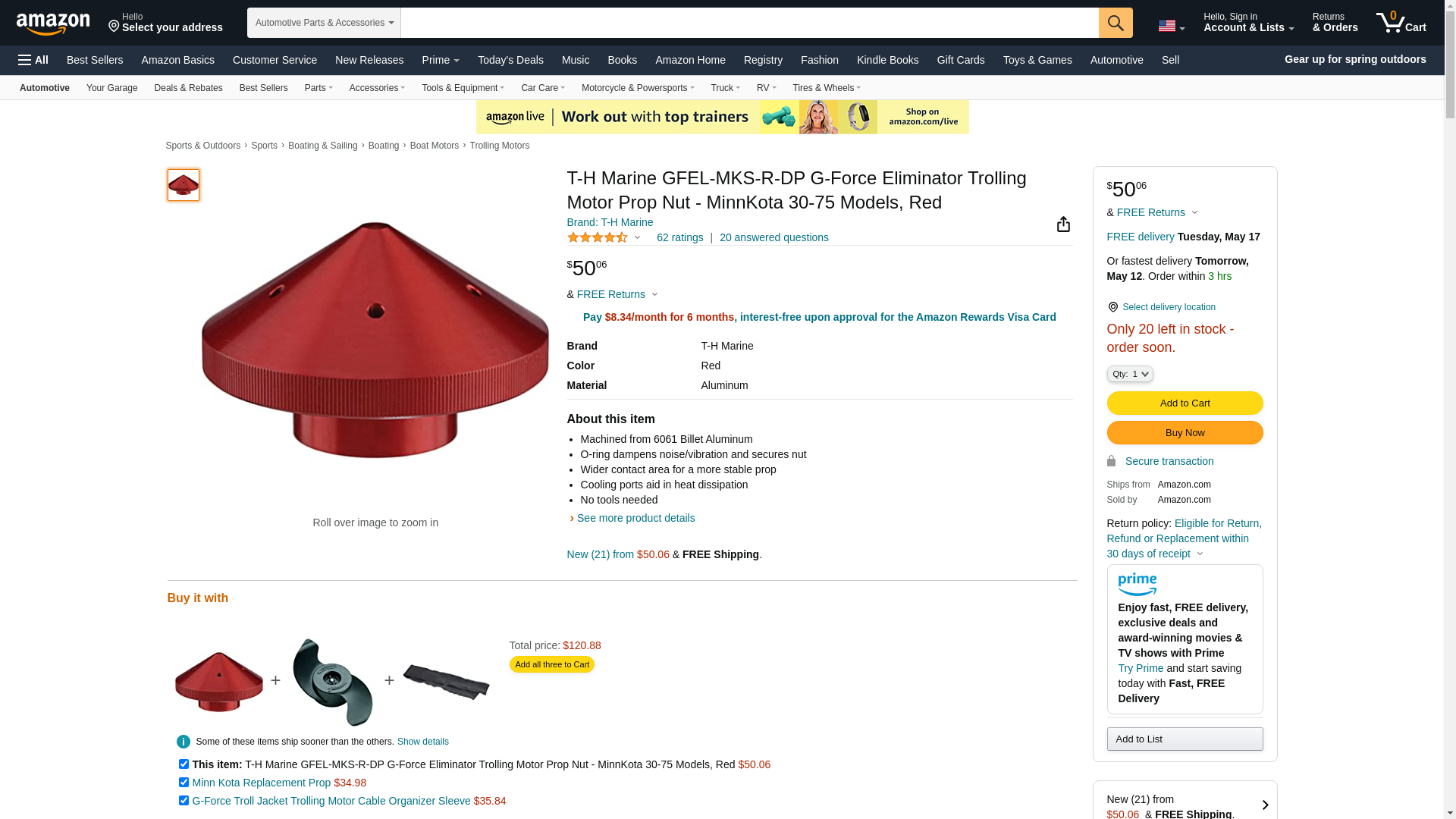 T. H. Marine GFEL-MKS-R-DP G-Force Eliminator Trolling Motor Prop Nut - MinnKota 30-75 Models, Red