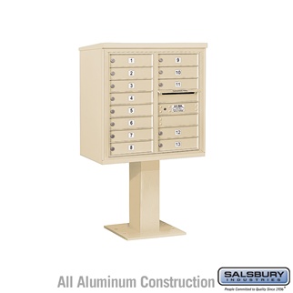 Salsbury 3408D-13SAN | Pedestal Mailbox 13 Doors Sand 58-5/8 Inch | 33LY67 | Raptor Supplies Worldwide