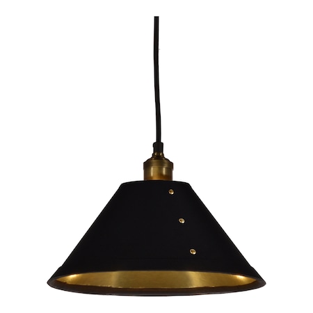 Dainolite FAY-121P-BK 1 Light Pendant, Empire Shade With Brass Rivets, Vintage Steel Finish, Black On Gold Fabric
