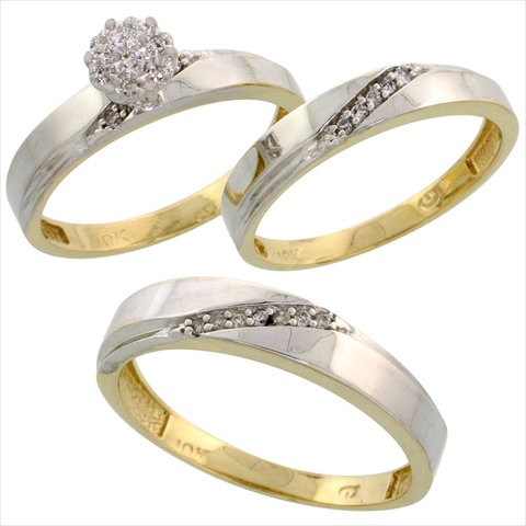 World Jewels 10K Yellow Gold Diamond Trio Engagement Wedding Ring .13 Ct. Brilliant Cut, Ladies Size - 6.5