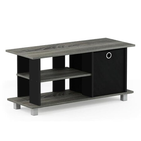 FURINNO Simplistic Entertainment TV Stand with Storage Bin, French Oak Grey/Black,13239GYW/BK