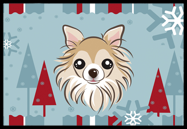 Caroline's Treasures BB1747JMAT Winter Holiday Chihuahua Doormat 24x36 Front Door Mat Indoor Outdoor Rugs for Entryway, Non Slip Washable Low Pile, 24H X 36W