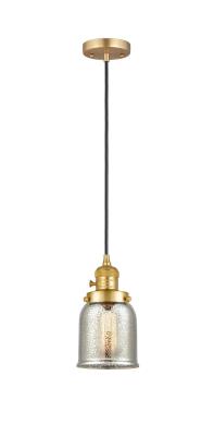 INNOVATIONS 201CSW-SG-G58 1-Light Mini Pendant Satin Gold. Collection: Franklin Restoration. Style: Traditional, Farmhouse. Metal Finish: Satin Gold. Metal Finish (Canopy/Backplate): Satin Gold. Material: Steel, Cast Brass, Glass. Dimension(in): 10(H) x 5(W) x 5(Dia). Min/Max Height (Fixture Height with Cord or Included Stems & Canopy)(in): 13/131. Wire/Cord: 10 Feet Of Black Textured Cord. Bulb: (1)60W Medium Base,Dimmable(Not Included). Maximum Wattage Per Socket: 100. Voltage: 120. Color Temperature (Kelvin): 2200. CRI: 99.9. Lumens: 220. Glass Shade Description: Silver Plated Mercury Small Bell. Glass or Metal Shade Color: Silver Plated Mercury. Shade Material: Glass. Glass Type: Mercury. Shade Shape: Bell. Shade Dimension(in): 5(W) x 5.75(H). Fitter Measurement (Glass Or Metal Shade Fitter Size): 3.25 inch Fitter. Canopy Dimension(in): 4.5(Dia) x 0.75(H). Sloped Ceiling Compatible: Yes. California Proposition 65 Warning Required: Yes. UL & ETL Certification: Damp Location.