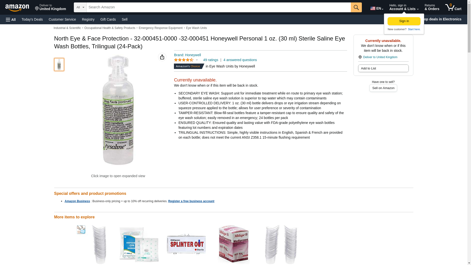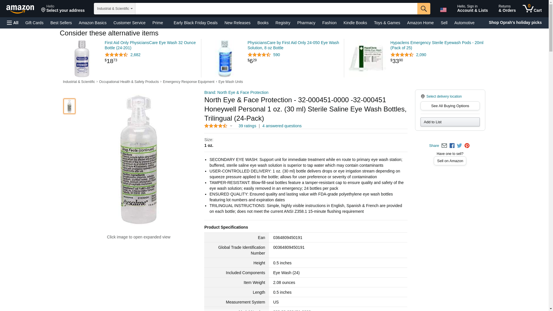 North Eye & Face Protection - 32-000451-0000 -32-000451 Honeywell Personal 1 oz. (30 ml) Sterile Saline Eye Wash Bottles, Trilingual (24-Pack)