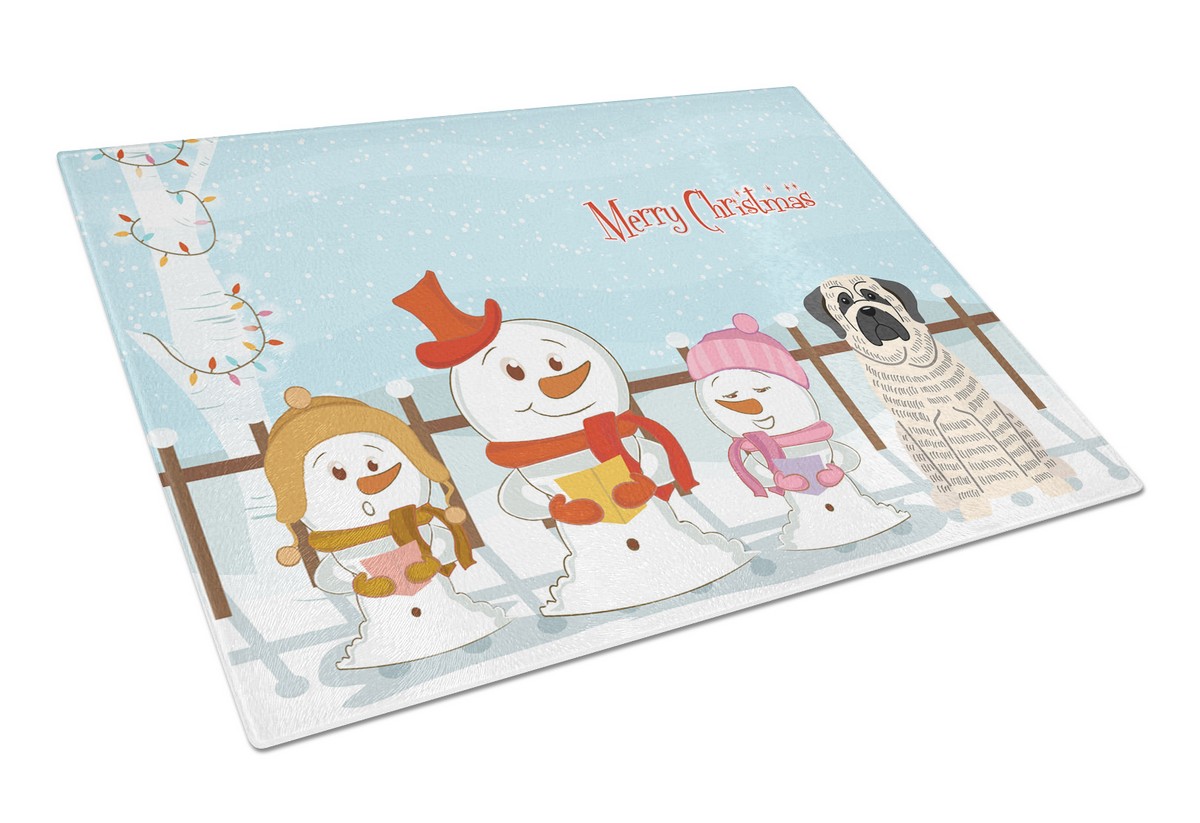 Carolines Treasures BB2347LCB Merry Christmas Carolers Mastiff Brindle White Glass Cutting Board, Large
