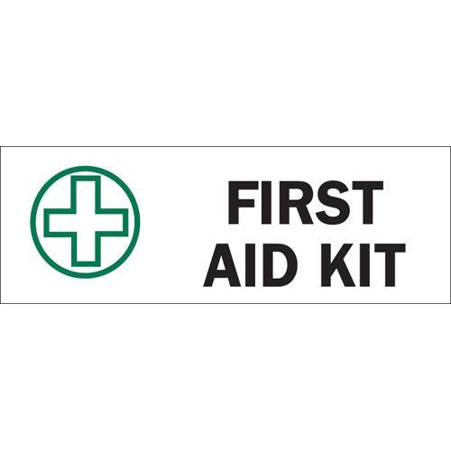 Brady 122618 First Aid Kit Sign - Self-sticking Polyester - Black/Green on White - 10 x 14