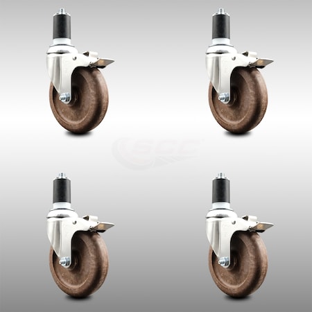 Service Caster Brand 5 Inch 316 Stainless Steel Light Duty Swivel Expanding Stem Casters Set of 4 Glass Filled Nylon Caster Wheels and 1-1/2” Stem–1,400lbs. Total Cpty–Casters with Total Locking Brake