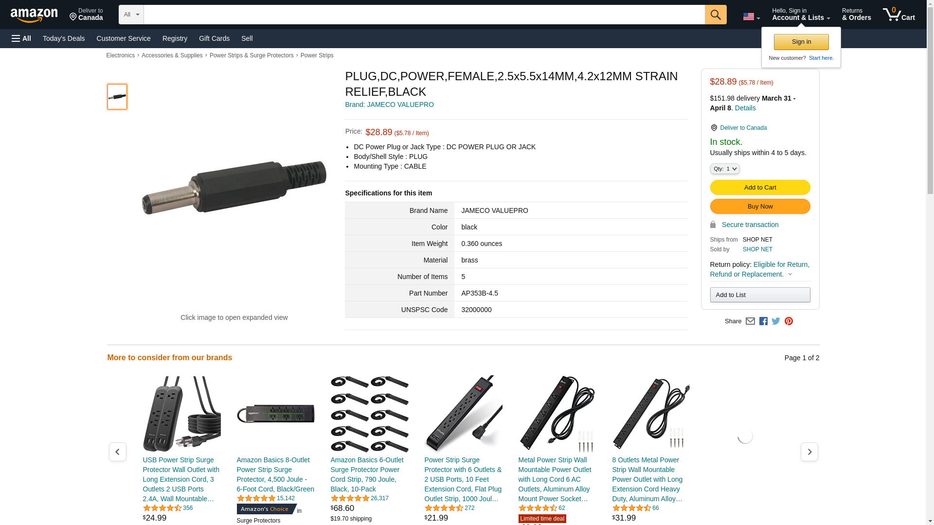 <b>Female DC Power Plug</b><br<br><i>Plug Size: 2.5mm Inner Diameter x 5.5mm Outer Diameter x 14mm Length</i><br><br><b>Features:</b><br><li>Strain Relief: 4.2mm Inner Diameter x 12mm Length<li>Contact Material: Nickel-plated Brass
