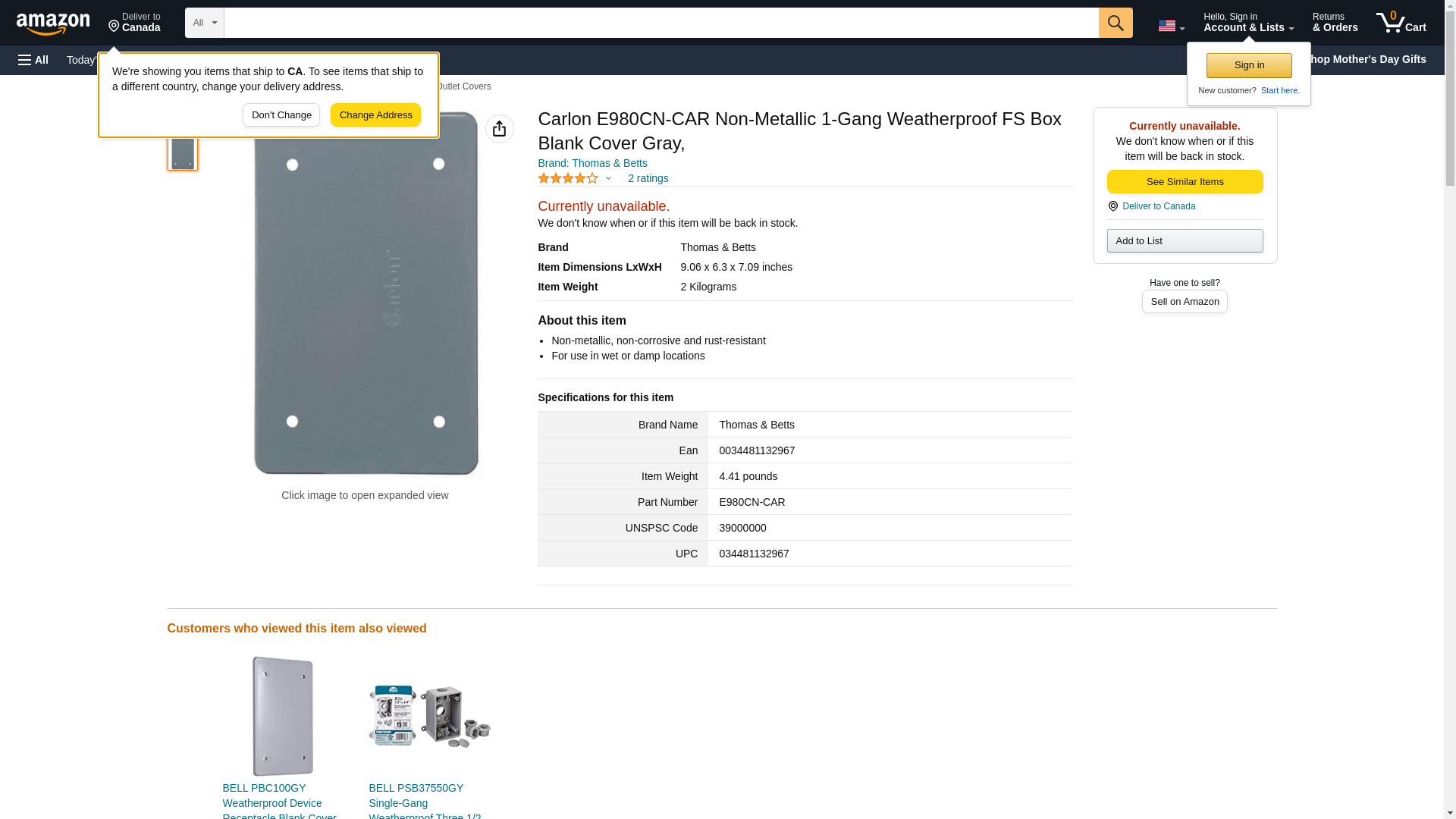 Product description This item is new, including original packaging! From the Manufacturer Box Cover; Blank; Weatherproof; 1 Gang; 4.62-Inch Length; 2.87-Inch Width; 0.14-Inch Thickness; Polycarbonate Material; Gray Color; Vertical Position; Box or Device Mount; UL, CSA Approval; 12 Standard Package.
