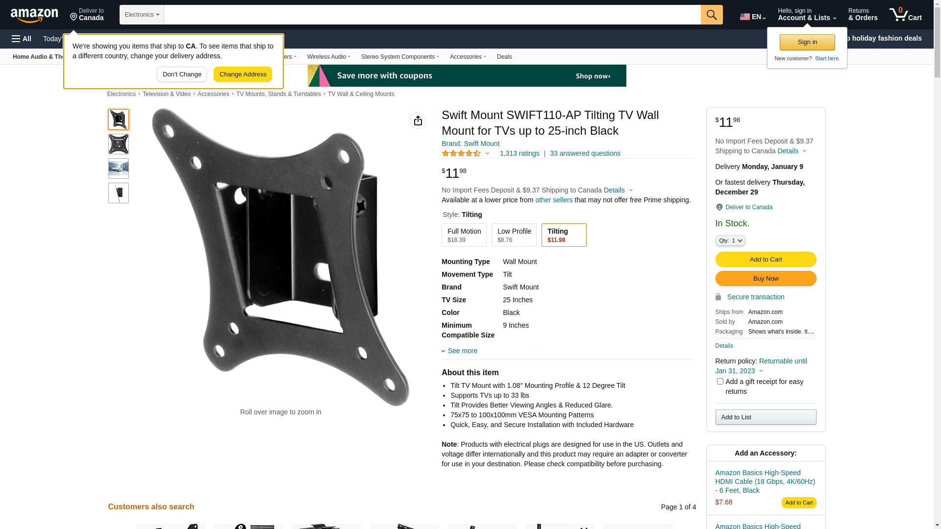 Swift Mount SWIFT110-AP Tilting TV Wall Mount for TVs up to 25-inch