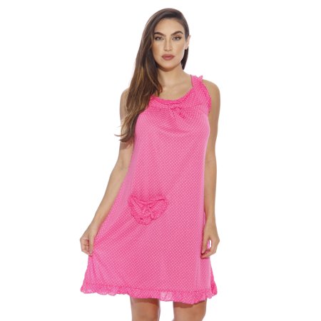 <ul> <li>SLEEP LIKE A BABY: Dreamcrests nightgowns for women are designed with ultra-comfort in mind. Youll love the luxuriously soft fabric that feels amazing on your skin, the breathable material that makes for comfortable cool nights, and the sleeveless design that prevents any bunching up while slumbering away.</li> <li>PRETTY UP YOUR EVENINGS: Made for women whose style never sleeps, these fun and sexy nighties feature pretty polka dots, bow detailing at the top, beautiful ruffle finishing at the bottom, and a cute heart pocket at the side; with the women sleepwear available in a range of lovely colors.</li> <li>FITS MOST BODY SHAPES: Easily slip into the ladies nightwear available in S-XL, which is designed to offer a comfortably loose fit while beautifully falling around your curves.</li> <li>LOUNGE AWAY IN STYLE: Dont limit these cute pajamas to just the bed. Wear them around the house while watching some T.V or having that night in with the girls, and experience loungewear that takes comfort to the next level.</li> <li>BEST VALUE AROUND: Weve used high quality material that doesnt shrink or run color while in the wash and complemented it with high quality stitching to prevent any premature unraveling. Enjoy a masterfully made night dress at the best prices online. Click Add to Cart now!</li> </ul>