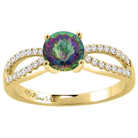 14K Yellow Gold Diamond Natural Mystic Topaz Engagement Ring Round 7 mm, sizes 5-10