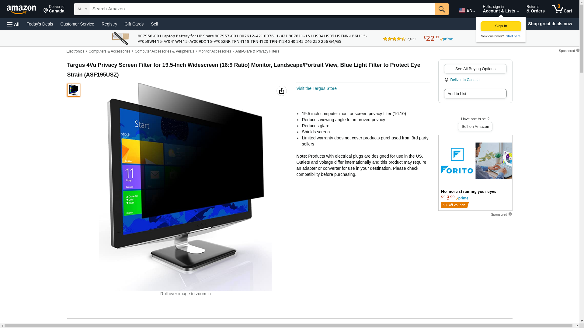 | Feature | Targus ASF195WUSZ Privacy Screen Filter - 19.5" Monitor |