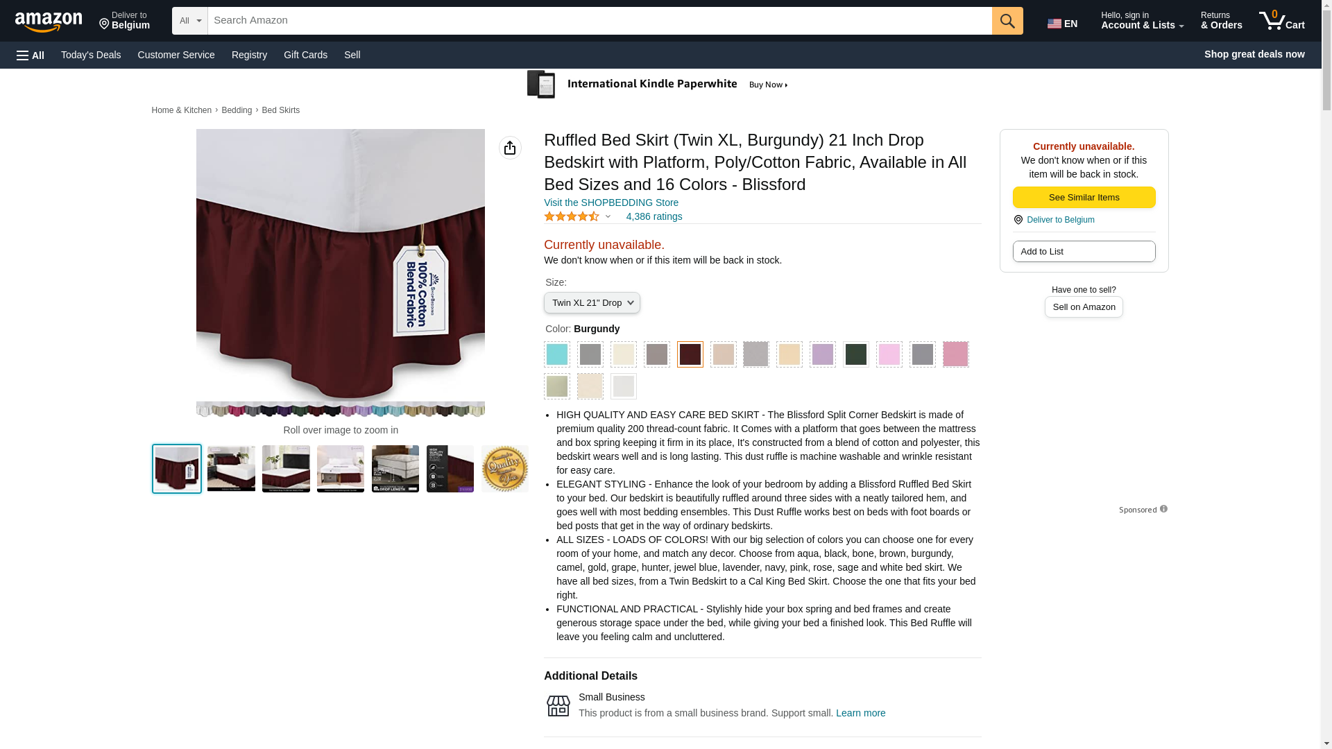 - ALL SIZES - LOADS OF COLORS! With our big selection of colors you can choose one for every room of your home, and match any decor. Choose from aqua, black, bone, brown, burgundy, camel, gold, grape, hunter, jewel blue, lavender, navy, pink, rose, sage and white bed skirt. We have all bed sizes, from a Twin Bedskirt to a Cal King Bed Skirt. Choose the one that fits your bed right.