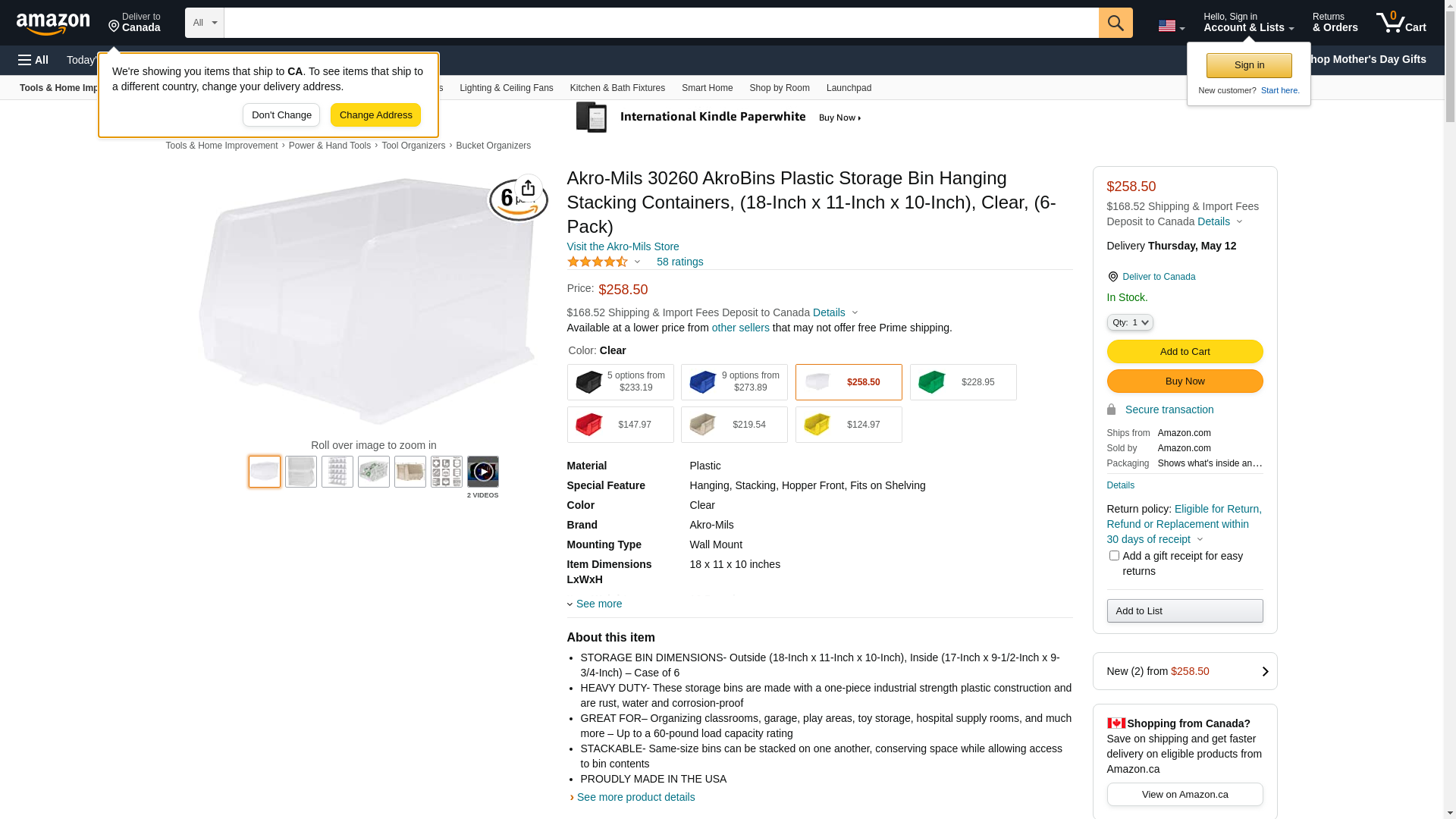 30260SCLAR Color: Clear, Size: 10" H x 11" W x 18" D Features: -Made in the USA. -Material: Plastic. Country of Manufacture: -United States. Product Type: -Stack & Hang Bin. Lid Available: -Available With Lid. Stackable: -Yes. Number of Items Included: -12. Dimensions: Size 5" H x 11" W x 10.88" D - Overall Height - Top to Bottom: -5". Size 5" H x 11" W x 10.88" D - Overall Width - Side to Side: -11". Size 5" H x 11" W x 10.88" D - Overall Depth - Front to Back: -10.88". Color Blue - Overall Product Weight: -1.5 lbs. Color Stone - Overall Product Weight: -2.68 lbs. Size 5" H x 6" W x 9.25" D - Overall Height - Top to Bottom: -5". Size 5" H x 6" W x 9.25" D - Overall Width - Side to Side: -6". Size 5" H x 6" W x 9.25" D - Overall Depth - Front to Back: -9.25". Size 5" H x 6" W x 9.25" D - Overall Product Weight: -0.64 lbs. Color Black - Overall Product Weight: -1.67 lbs. Size 7" H x 8.13" W x 10.75" D - Overall Height - Top to Bottom: -7". Size 7" H x 8.13" W x 10.75" D - Overall Width - Side to Side: -8.13". Size 7" H x 8.13" W x 10.75" D - Overall Depth - Front to Back: -10.75". Size 7" H x 16.5" W x 14.75" D - Overall Height - Top to Bottom: -7". Size 7" H x 16.5" W x 14.75" D - Overall Width - Side to Side: -16.5". Size 7" H x 16.5" W x 14.75" D - Overall Depth - Front to Back: -14.75".