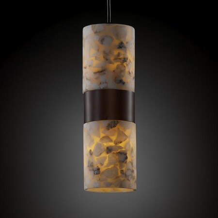 Justice Design Group Lighting ALR-8758-10-DBRZ Alabaster Rocks - Dakota Small 2-Up & Downlight Pendant - Cylinder with Flat Rim Shade - Alabaster Rocks, Dark Bronze