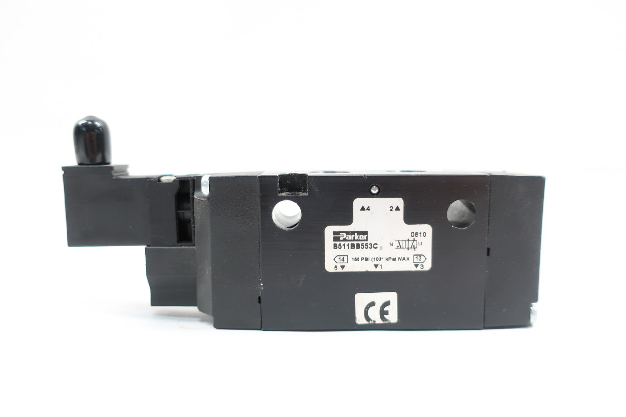 Parker Hannifin B511BB553C Series B5 Aluminum Pneumatic Solenoid 4-Way Air Control Valve,120/110 VAC, 60/50 Hz Current, 1/4" NPT Inline