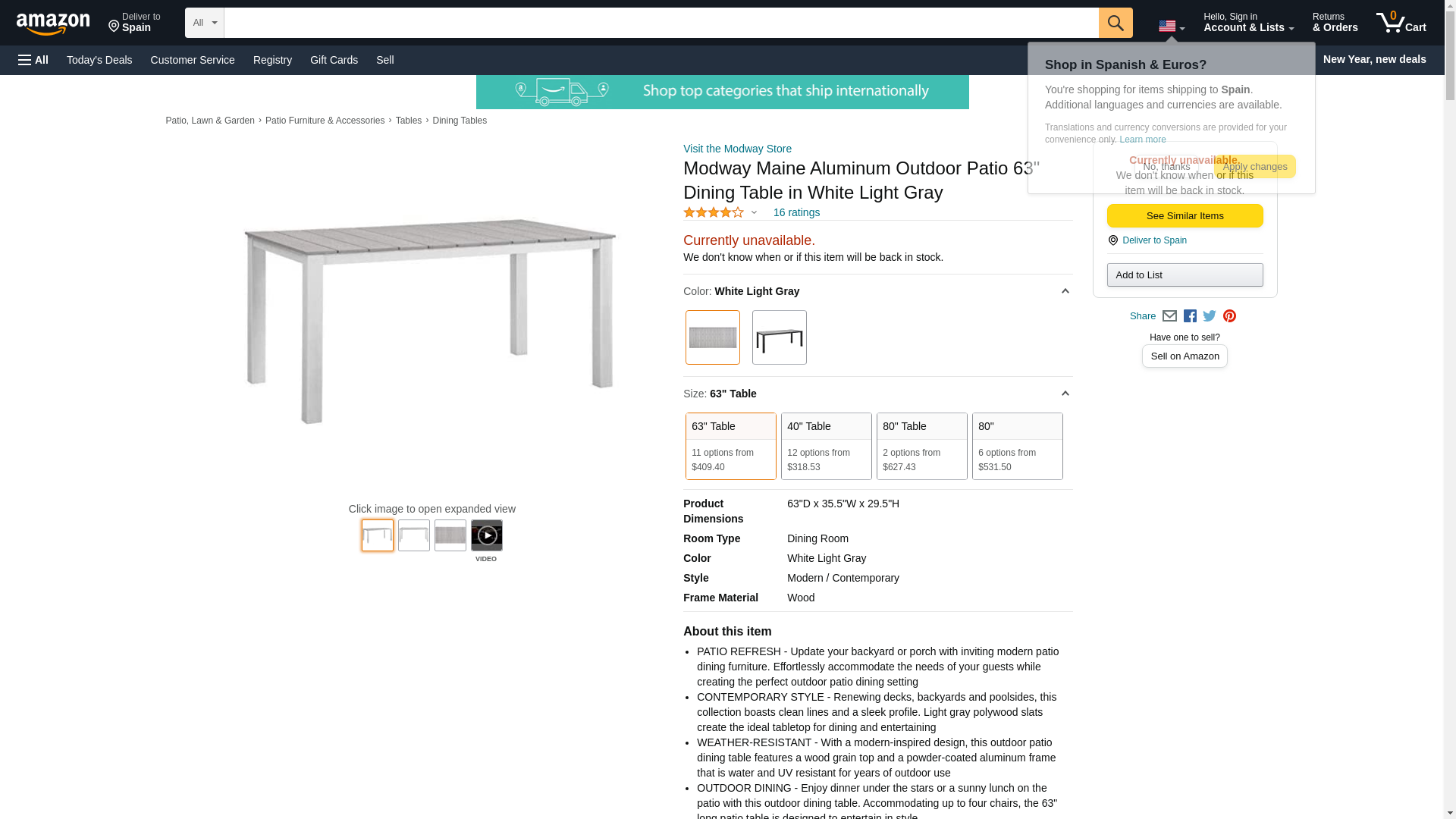 Bordered by the Atlantic Ocean rests the Maine Outdoor Patio 63" Dining Table. Distinguished by its synthetic wood grain plank boards, powder-coated aluminum frame, inspired design, and rich organic feel, Maine Patio Dining Table stands out as a versatile piece for outdoor dining. This contemporary modern 63� outdoor table is perfect for contemporary patios, backyards, poolside, and other outdoor lounge areas.FeaturesSet Includes: One - Maine Dining Table Overall Product Dimensions: 35.5"L x 63"W x 29.5"HFloor to Underside of Table: 27"HSpace Between Legs: 56.5"W Color: White Light Gray Material: Light F61 polywood table top ?size: Top:35.5x5.5x.5 (11pcs),Sandy White TW328 aluminum apron and legs?leg size:2.5x2.5x5/100,apron: 2x.5, Assembly Required,Plastic Glides; cushion density is 24kg/m3 Assembly Required: Yes Made In China