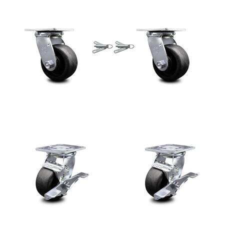 Glass Filled Nylon Swivel Top Plate Caster Set of 4 w/4" x 2" Black Wheels - Includes 2 Swivel with Bolt on Swivel Locks & 2 Swivel with Brakes - 4800 lbs Total Capacity - Service Caster Brand