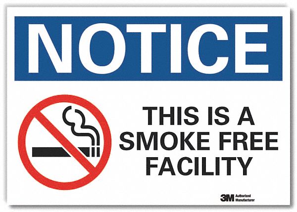 Notice Sign, Vertical Rectangle, Number of Printed Sides 1, English, Sign Format Traditional OSHA, Sign Legend This Is A Smoke-Free Facility, Sign Legend Background Color White, Sign Legend Style Symbol and Text