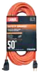 Extension Cord, General Use Indoor/Outdoor, 16 AWG, 3-Conductor Grounded, 50', Safety Orange PVC Jacket, 125 Volts, 13 Amps, 1625 Watts, NEMA 5-15P/5-15R, Straight Plug, Type SJTW, UL Listed