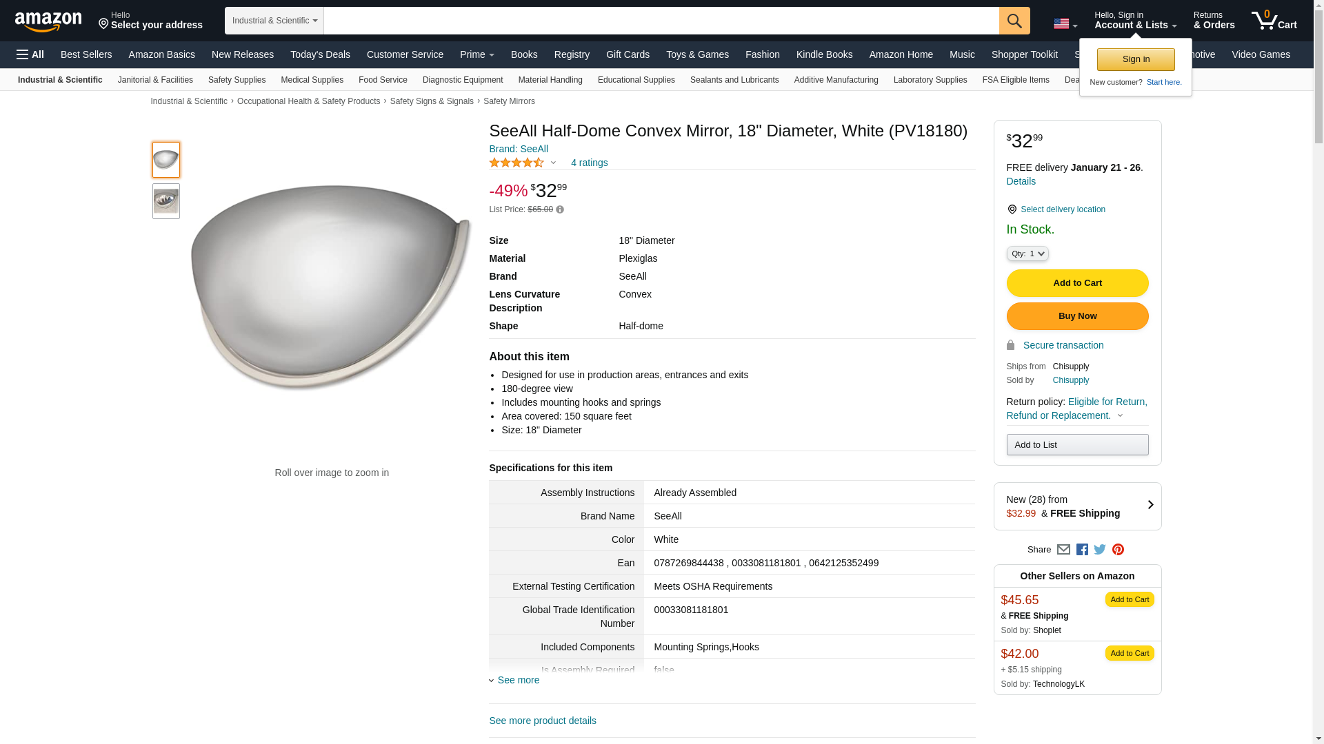 See All PV18180 Half-Dome Convex Security Mirror 18-Inch dia.