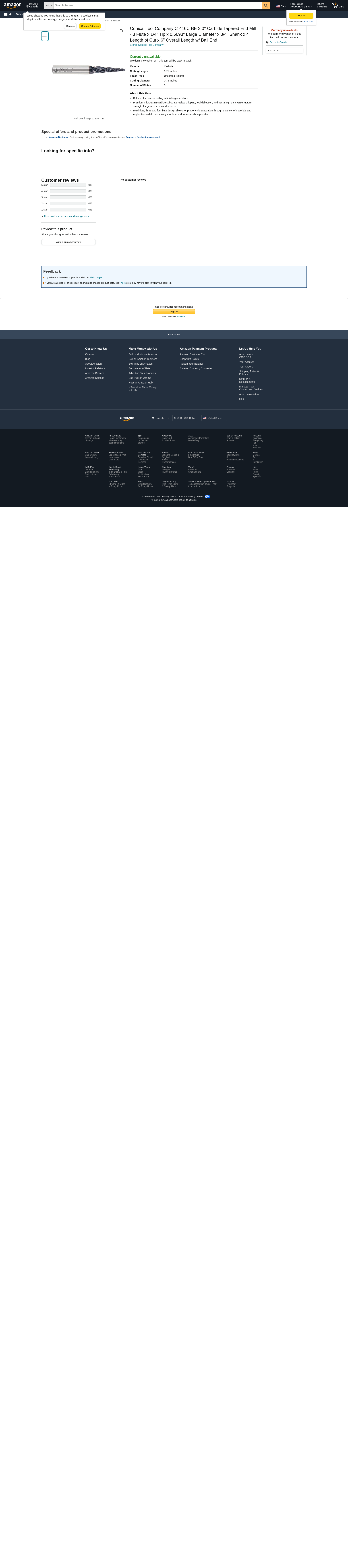 Conical Tool Company C-416C-BE 3.0° Carbide Tapered End Mill - 3 Flute x 1/4'' Tip x 0.6693'' Large Diameter x 3/4'' Shank x 4'' Length of Cut x 6'' Overall Length w/ Ball End