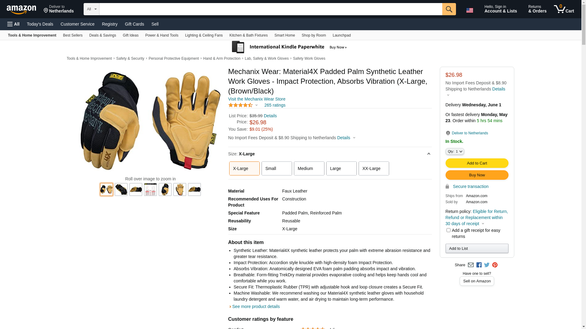 Mechanix Wear: Material4X Padded Palm Work Gloves (X-Large, (Brown/Black)