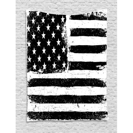United States Tapestry, Grunge Aged Black and White American Flag Independence Fourth of July Decor, Wall Hanging for Bedroom Living Room Dorm Decor, 60W X 80L Inches, Black White, by Ambesonne