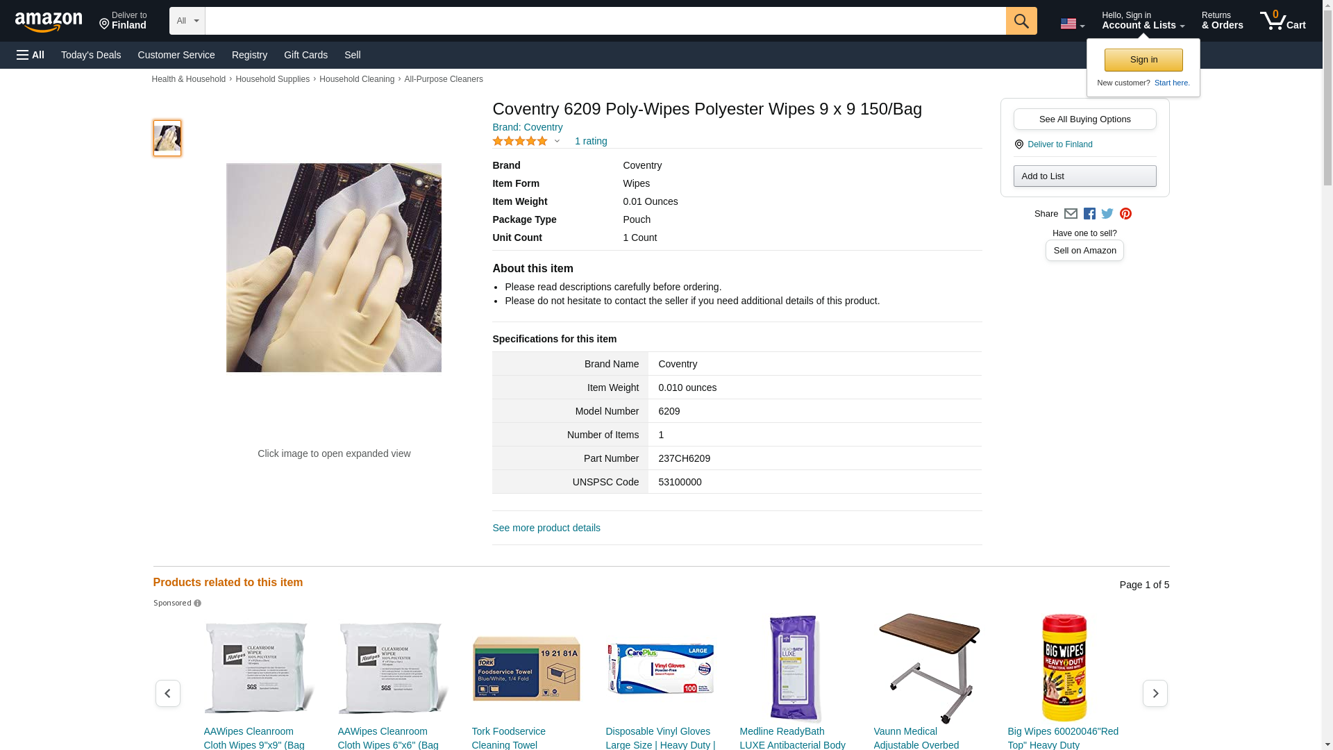 Coventry 6209 Poly-Wipes™ Polyester Wipes 9 x 9 150/Bag