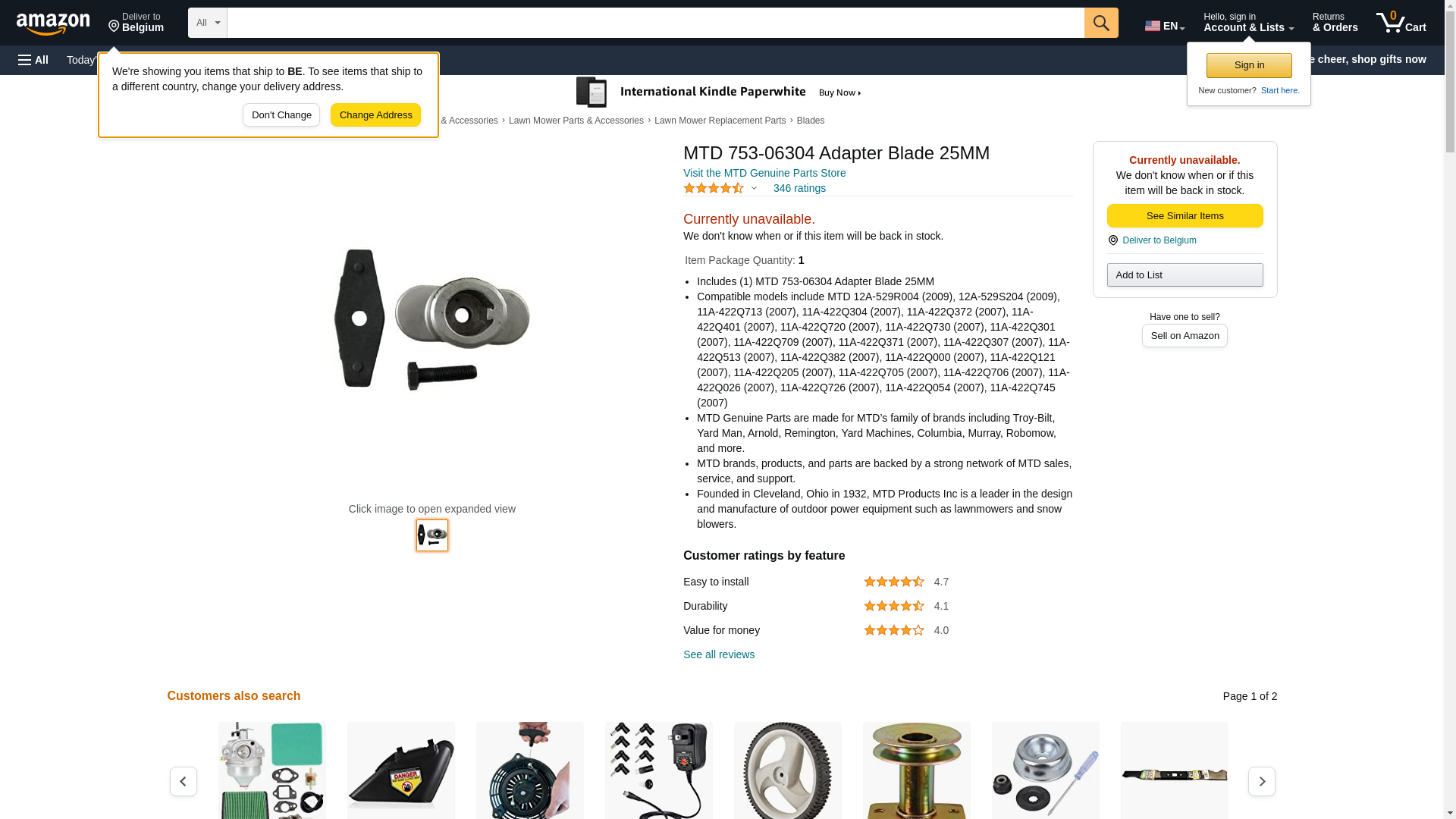 | Feature | MTD 753-06304 Adapter Blade 25MM |