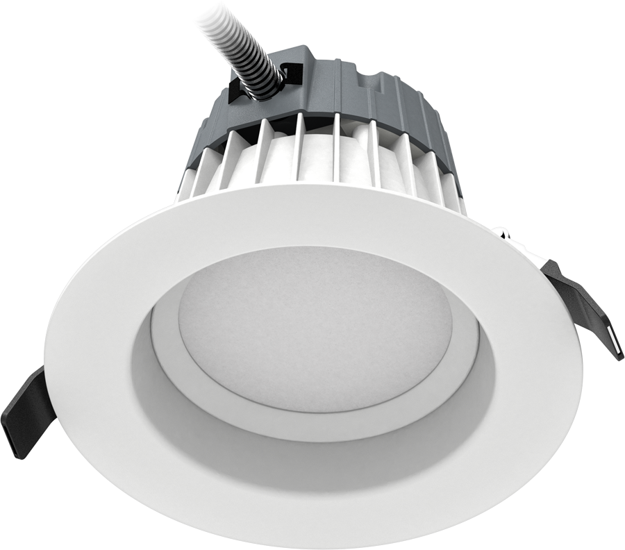 These high-performance downlights are optimized for new construction and retrofit applications. Adjustable, spring-loaded retention tabs keep fixtures secure after installation, and extension ring accessories make it easy to use 6” models in 8” housings. Our commercial downlights have a diffuse polystyrene lens that creates smooth, uniform light and reduces glare without sacrificing lumen output. All use a universal, 120-277V onboard driver with 0-10V dimming, and 90+ CRI models are available for the accurate color rendering often vital in commercial applications. All models are IC rated for direct contact with insulation and suitable for use in dry, damp and wet locations, making them perfect for both indoor and outdoor use.