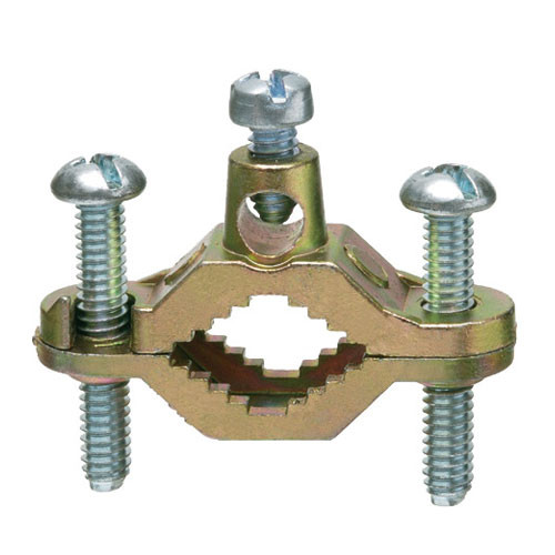 Arlington 720S - Bare Wire Ground Clamp - 1/2" to 1" Pipe Size - Zinc die-cast. Brass color plated