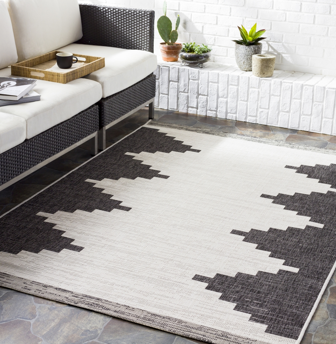 Surya EAG2356-2710 2 ft. 7 in. x 10 ft. Eagean Machine Woven Rectangle Rug, Black & Multi Color