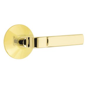 Brass Modern Hardware Collection - Privacy Aston Right Handed Lever with Modern Rose and Concealed Screws in Unlacquered Brass by Emtek Hardware - C5207234ASTUS3NL-RH | MyKnobs
