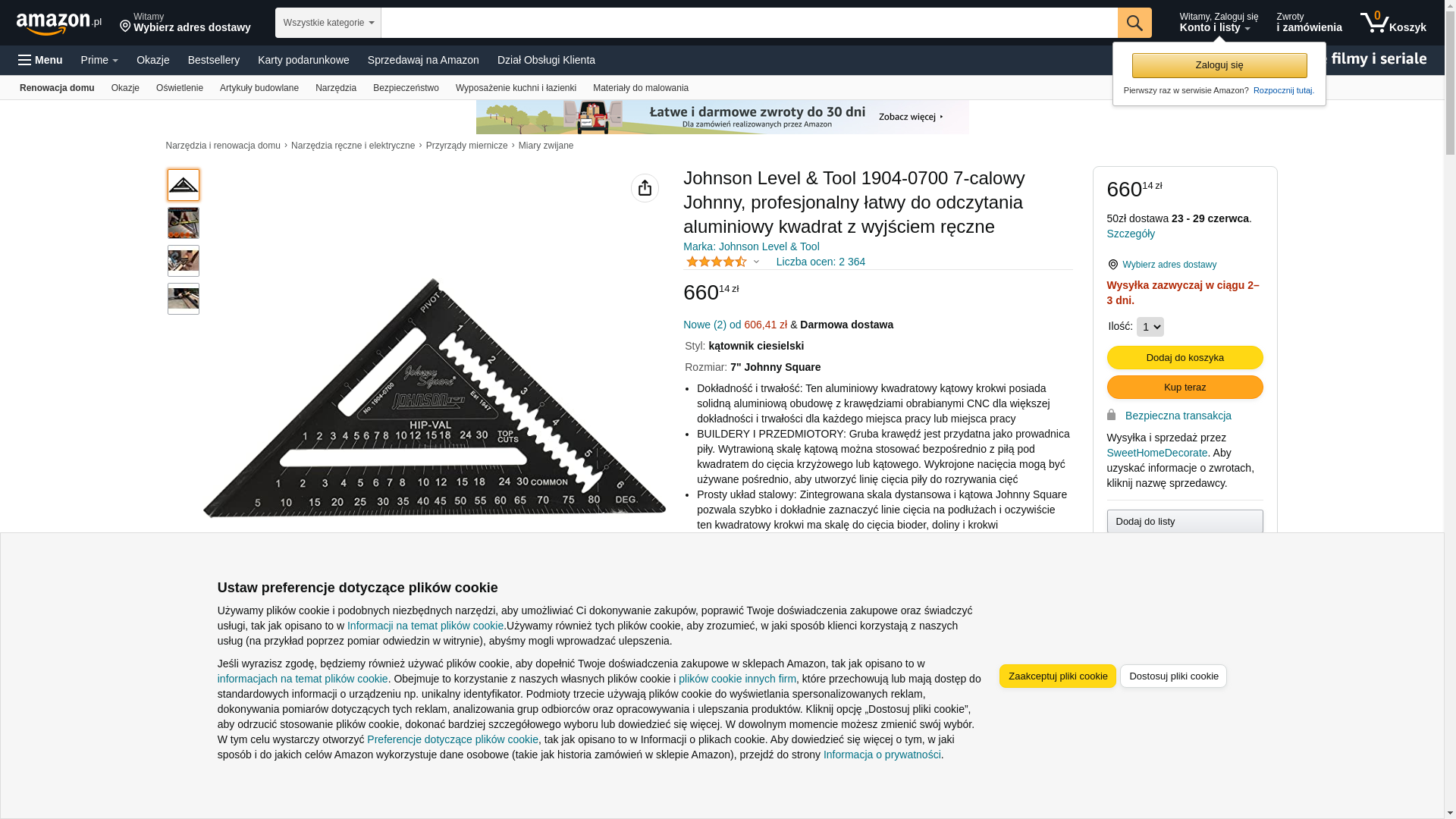 Johnson Level & Tool 1941-0700 Johnny Square Professional Aluminum Rafter Square w/Manual, 7", White, 1 Square