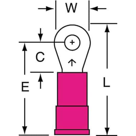 Ring Terminal, Red, Brazed, 22 to 18, PK1000