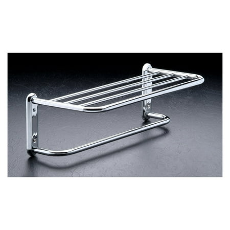 Towel Shelf, Number of Shelves 1, Finish Polished Chrome, Overall Length 19-1/2 In., Overall Height 6-1/2 In., Overall Depth 8-1/2 In., Number of Towel Bars 1, Material Zamac, Mounting Type Exposed Mount, Includes Mounting Hardware