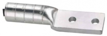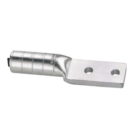 Panduit LAB800-12-1 Code Conductor Lug, Two Hole, Aluminum, 800 kcmil Aluminum/Copper Conductor Size, 1/2" Stud Hole Size, 1.75" Stud Hole Spacing Width, Gray Color Code, 3-7/16" Wire Strip Length, 0.59" Tongue Thickness, 1.72" Tongue Width, 3.42" Neck Length, 8.30" Overall Length