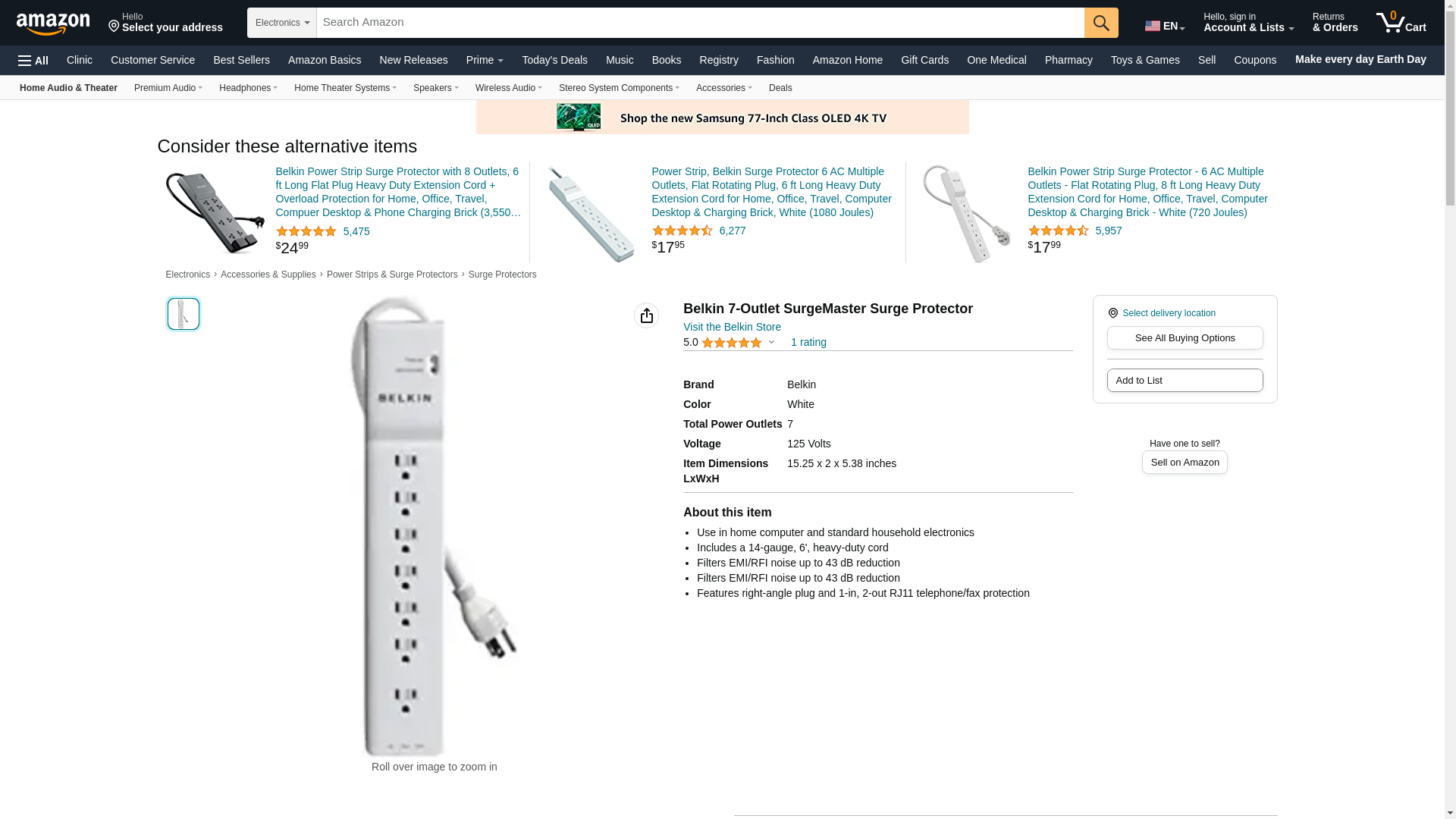 belkin be107200-06 / 7-outlet / 2320 joules / 6-foot cord / surge suppressor
