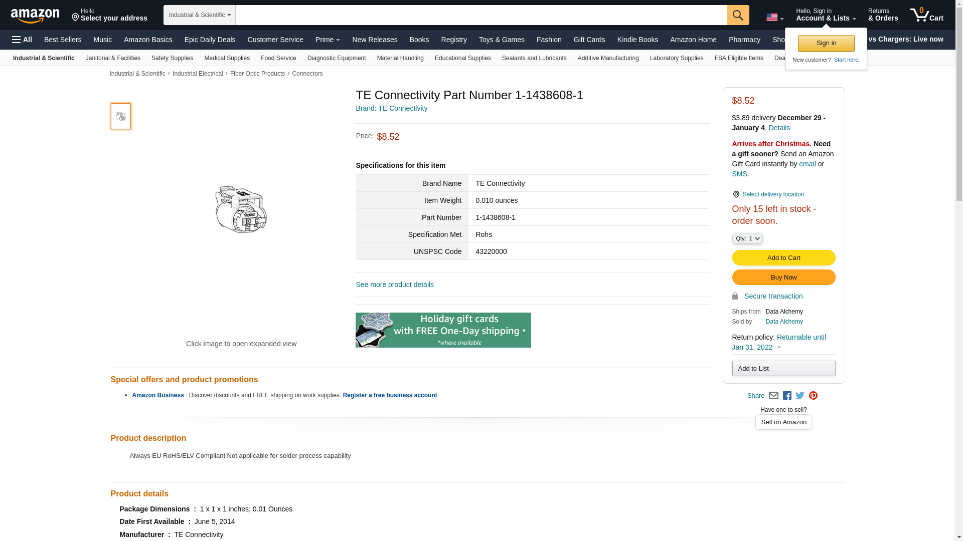 | TE Connectivity | 1-1438608-1 | 1 | 1 | ||