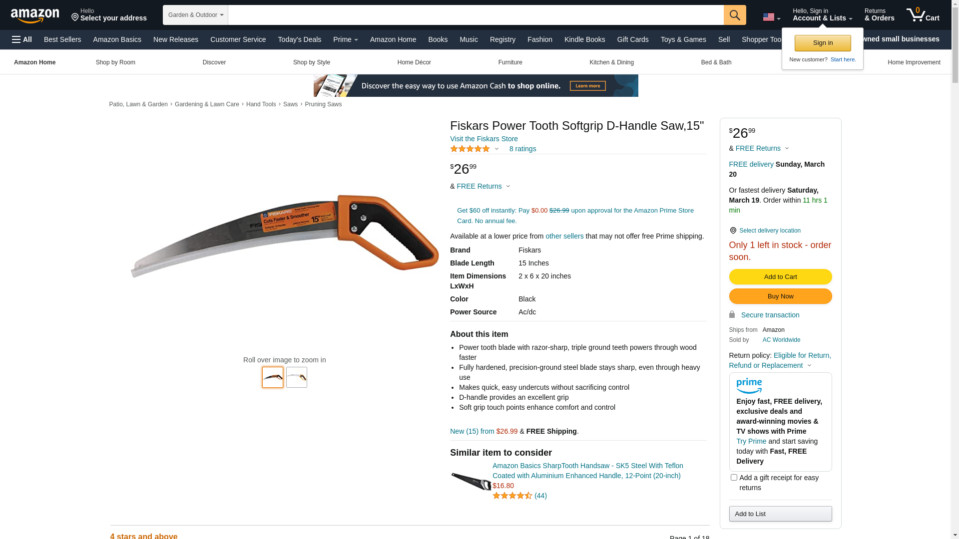 Fiskars 15 Inch Pruning Saw with Handle