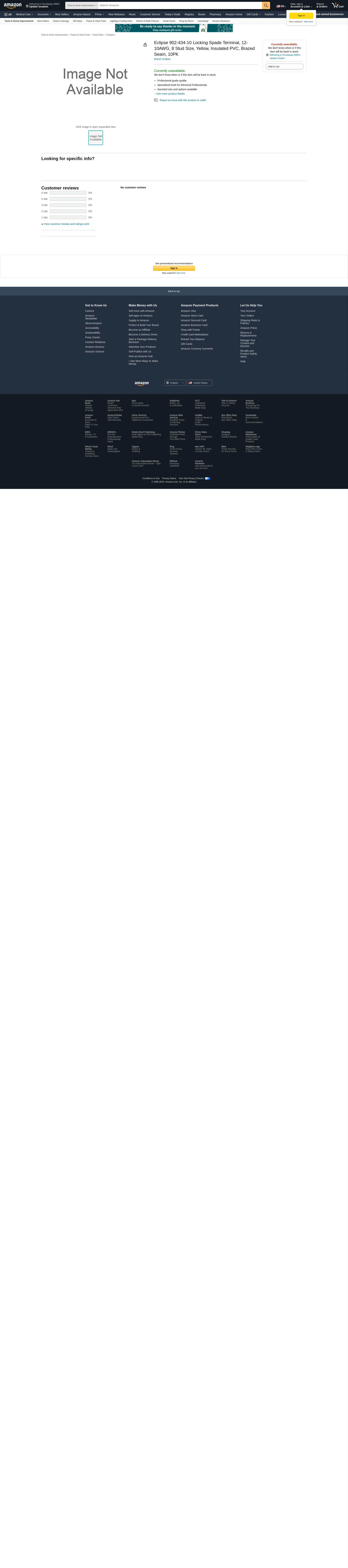 Eclipse, 902-434-10, Locking Spade Terminal, 12-10AWG, #8 Stud Size, Yellow