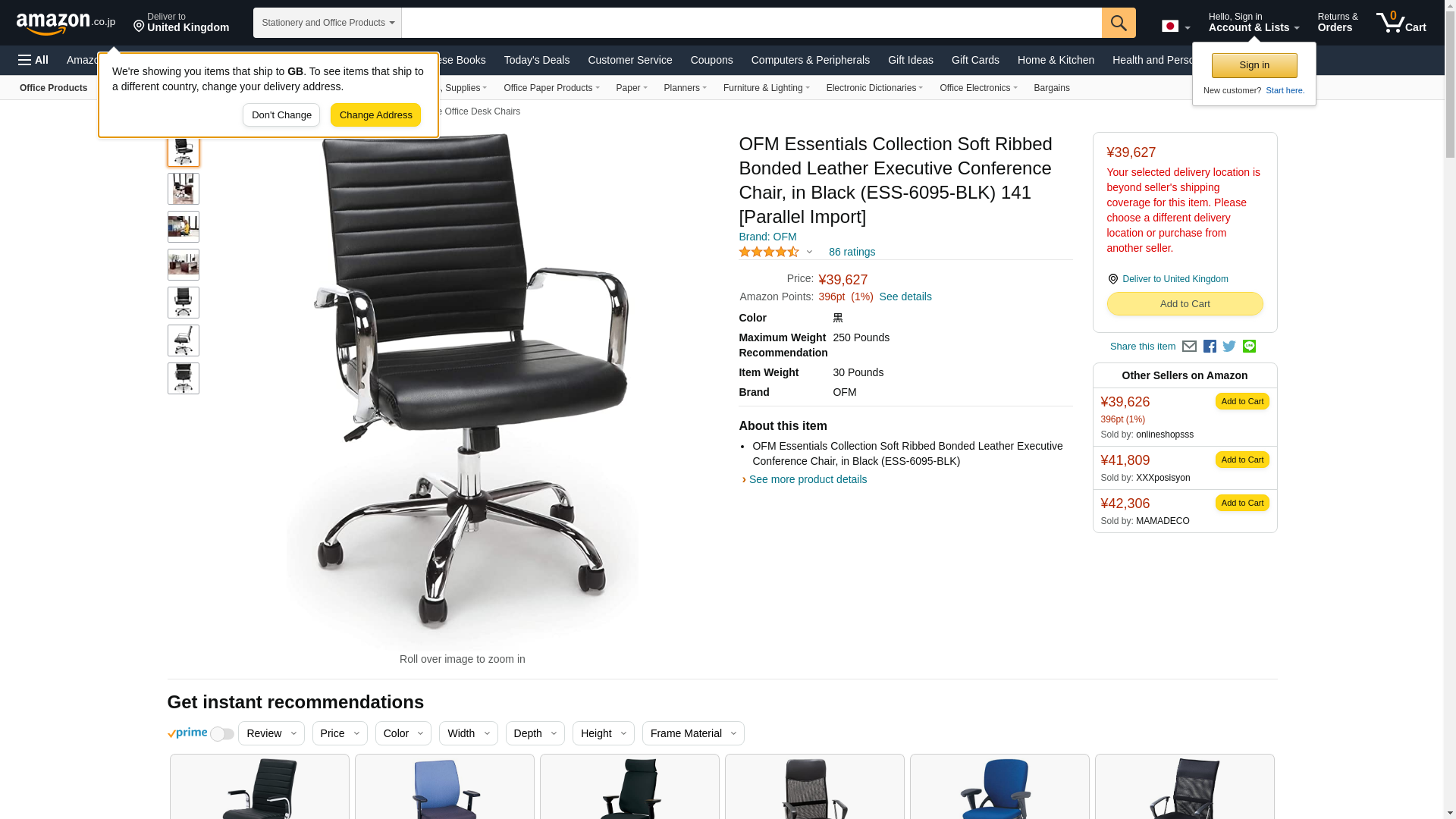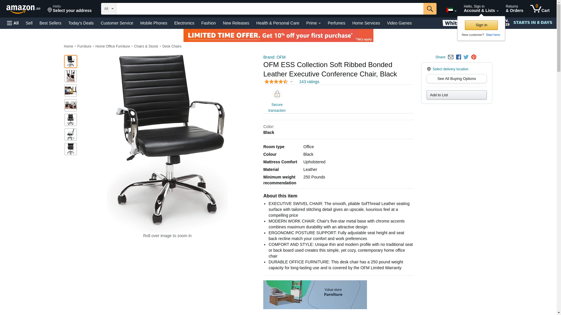 OFM ESS Collection Soft Ribbed Bonded Leather Executive Conference Chair, Black