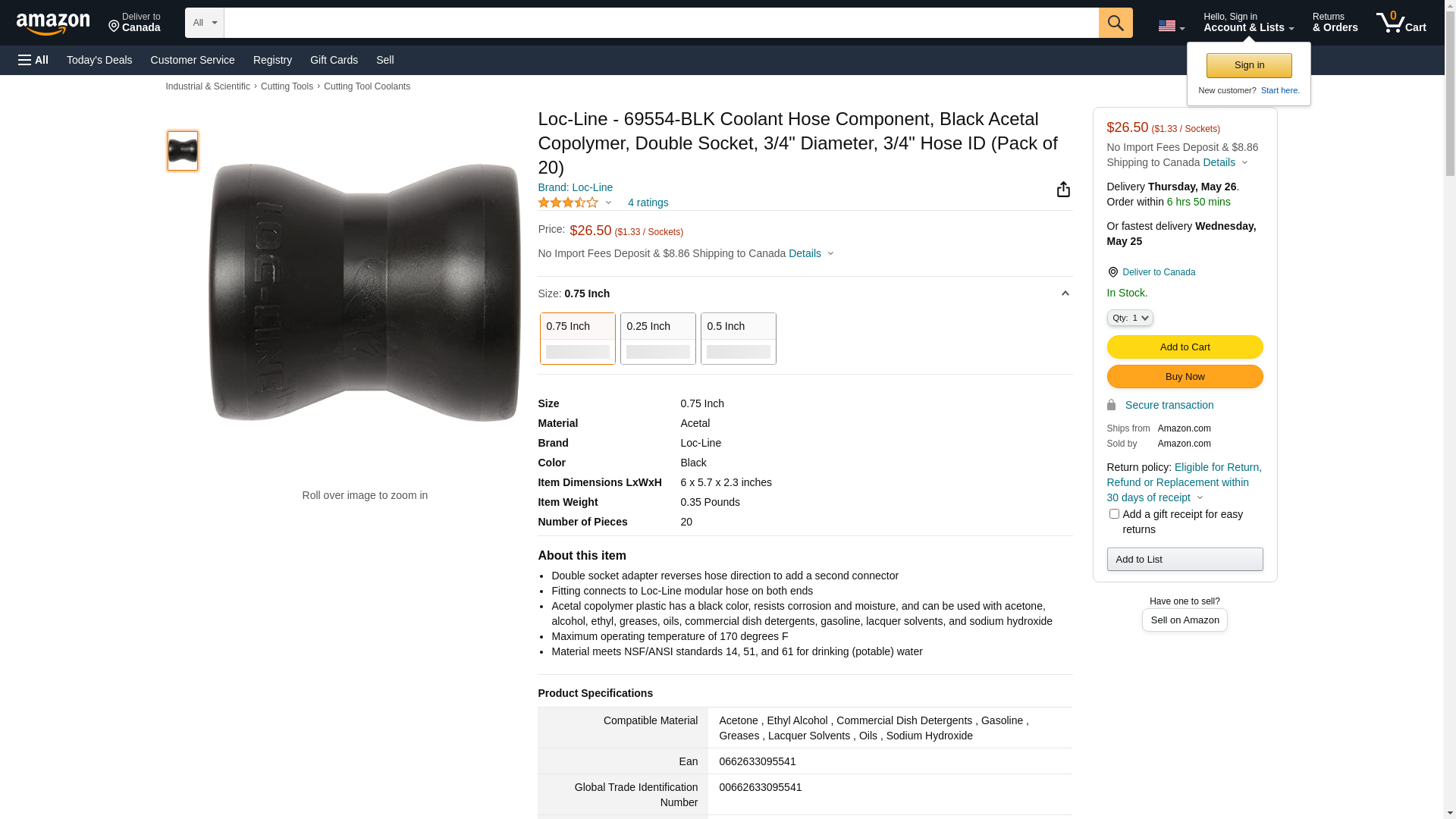 Loc-Line - 69554-BLK Coolant Hose Component, Black Acetal Copolymer, Double Socket, 3/4" Diameter, 3/4" Hose ID (Pack of 20)