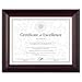 Ridged plastic frame appeals to both contemporary and classic tastes with rosewood and black frame edges. Great for tabletop or wall display. Two-toned frame includes a usable certificate.