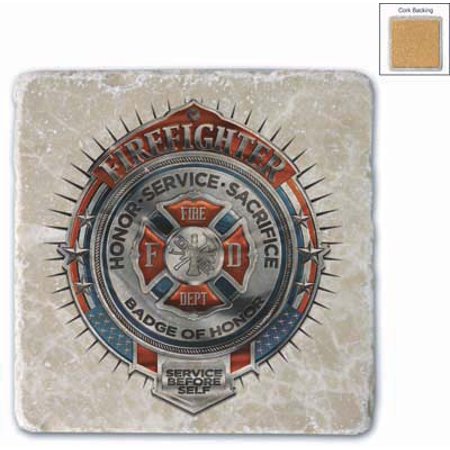 Coasters are made of solid Italian Botticino Marble Cork-backed. Imprinted directly on the stone. White ivory slightly marbled smooth finish with tumbled edges. Measure Approx 4x4 inches.